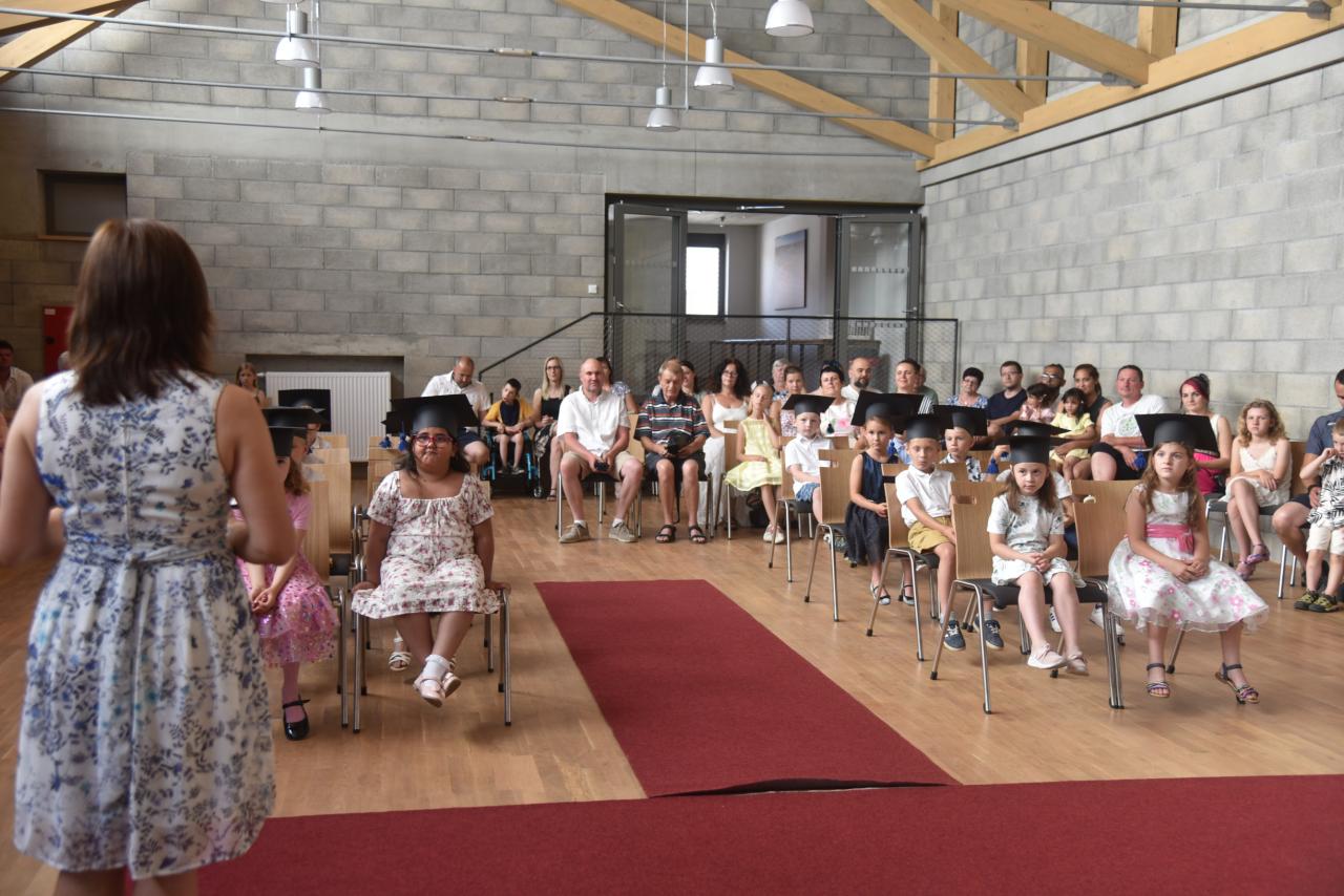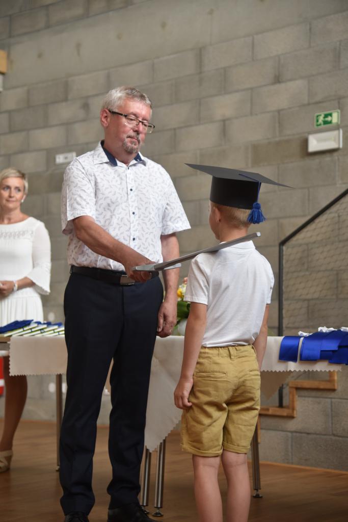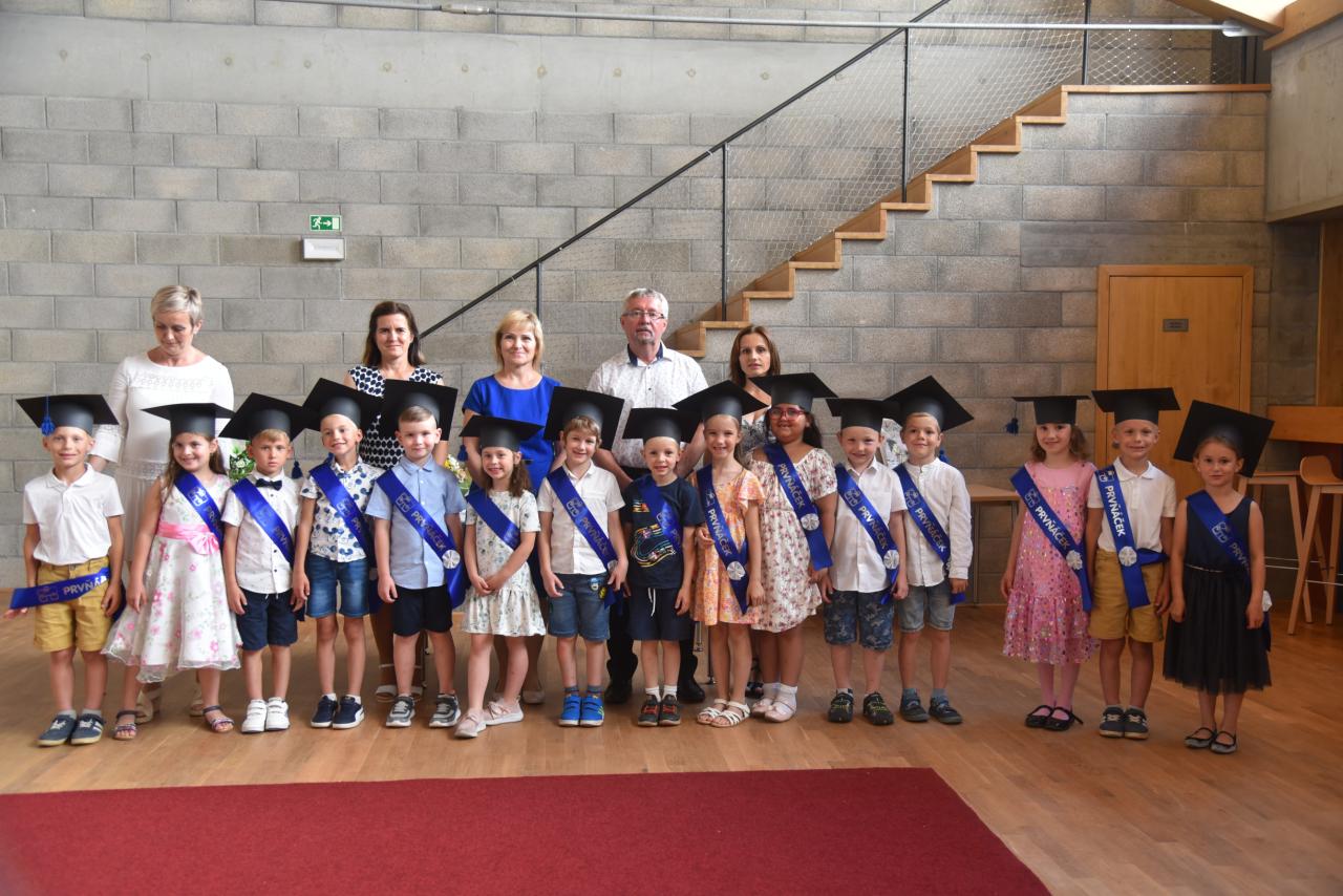 Pasování na prvňáky se ujal místostarosta Mgr. Uhlíř. Ve středu 18. 6. 2025. se budoucí prvňáčci sešli v sále obecního penzionu a pomyslně se rozloučili s životem školkaře.